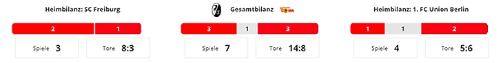 • «Фрайбург» не набирал дома очки в матчах против двух других команд, вышедших в первую Бундеслигу в прошлом году — против «Падерборна» и «Кёльна». Во всех же матчах к данному моменту против трёх этих клубов, включая «Унион», «Фрайбург» набрал только три очка из возможных 15.