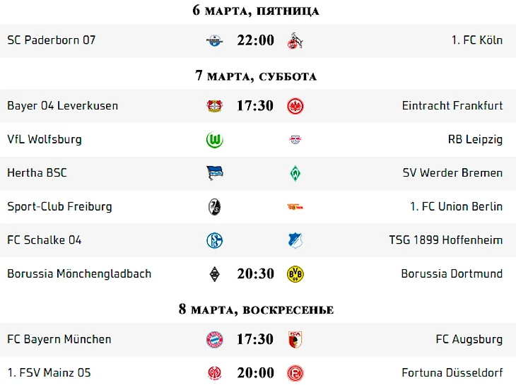• В прошлом сезоне во встрече этих клубов в Берлине Клаудио Писарро сравнял счёт на 96-й минуте, что позволило продлить серию «Вердера» без проигрышей в лиге на «Олимпийском стадионе» до пяти матчей.
