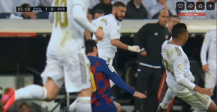 А затем, Месси ценой ЖК остановил контратаку соперника, уложив на газон Каземиро.