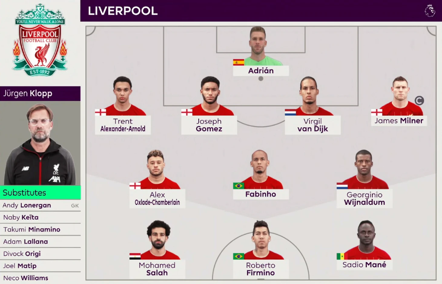 "Ливерпуль" перед матчем потерял Алиссона из-за травмы бедра, поэтому в "старте" вышел Адриан. Эндрю Робертсону был предоставлен отдых по решению тренерского штаба, шотландец не попал даже в заявку. На левом фланге обороны с капитанской повязкой появился Джеймс Милнер.