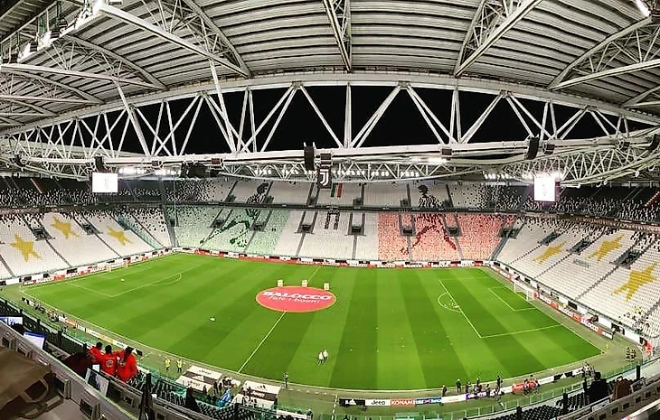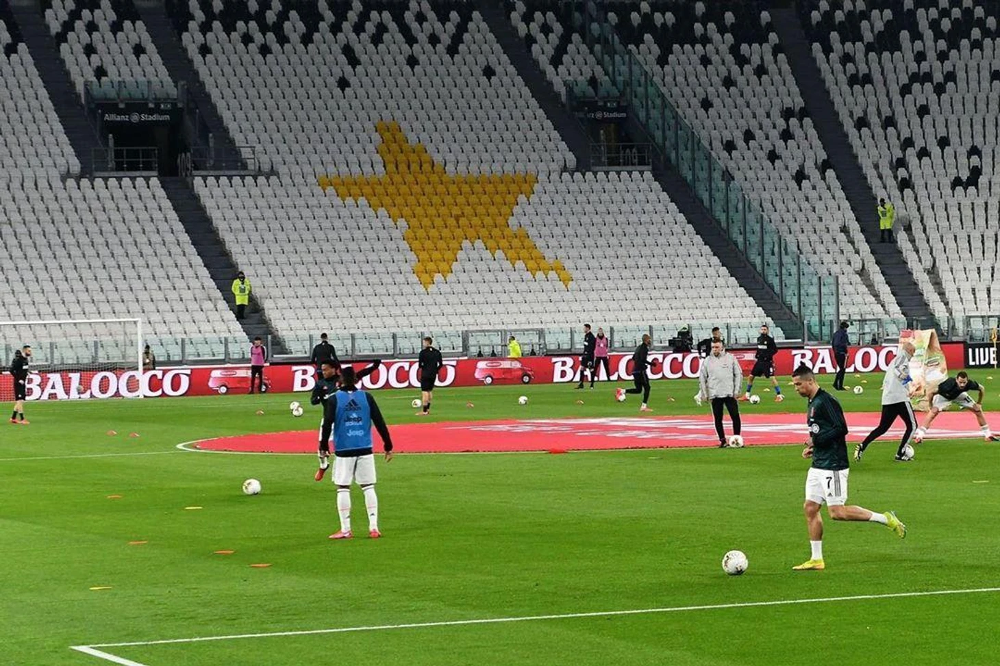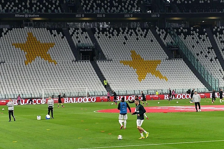 Как и обещали итальянские футбольные функционеры, матч «Ювентус» — «Интер» проходит при пустых трибунах «Альянц Стэдиум».