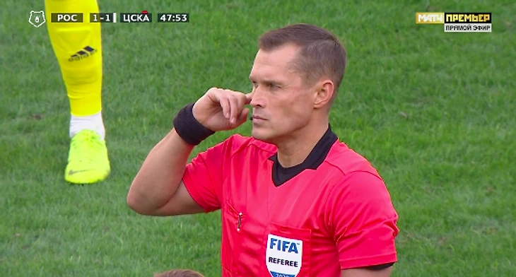 После двухминутной паузы Владислав Безбородов решился посмотреть повтор сам – и затем принял серьезное решение. Назначил не только пенальти, но и дал прямую красную карточку игроку ЦСКА.