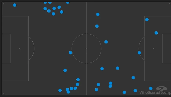 На деле схема изменилась, даже желание рисковать появилось, но в лице Шкриньяра на фланге Антонио оставил «Юве» очевидное слабое звено. Команда Сарри просто направляла атаки в сторону Милана, понимания, что угроза от него минимальна. Это хорошо заметно из карты передач Янга и Шкриньяра за этот отрезок – Эшли накрывали и вынуждали пасовать назад, Милану давали свободу: