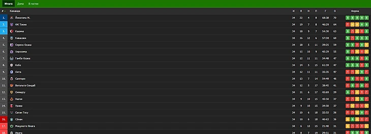 Видим, Йокогама Ф. Маринос топ 1. Этот коллектив за 34 матча заработал 70 очков. Забил 68 голов и пропустил 38. Хорошая разница мячей, лучший показатель по забитым, указывают на высокий и надёжный игровой баланс команды. А на этот год, команда приобрела молодого нападающего из Гамба-Осака Ичими Казунари. В прошлом сезоне 22-летний нападающий забил 17 голов. Это будет отличным подкреплением и без того очень забивного клуба. В этом сезоне, как и в прошлом буду рассматривать тоталы на Йокогаму.