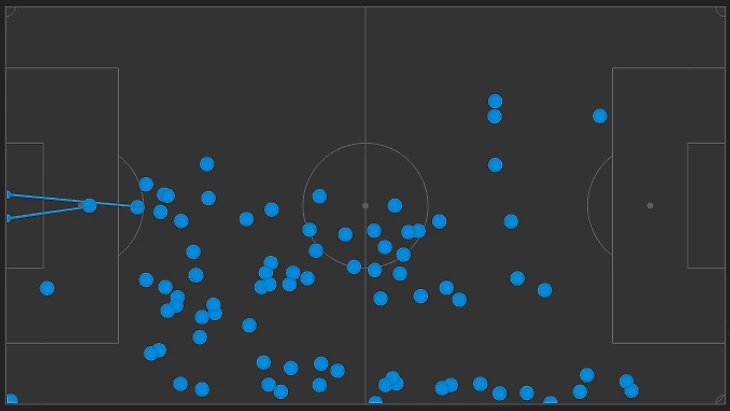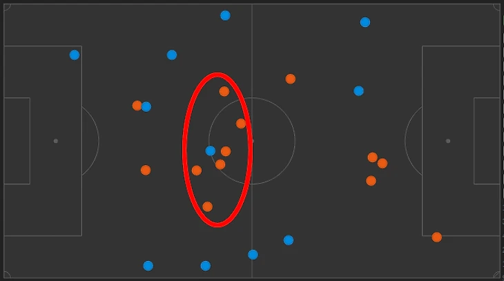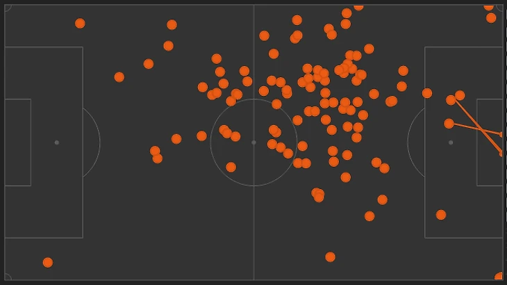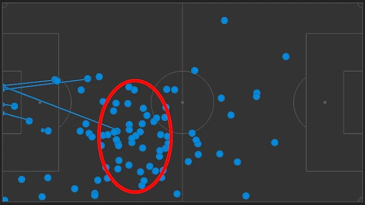 ПСЖ играл достаточно низко, поэтому карта касаний примерно похожа на игру с Монпелье