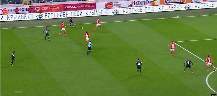 После замен Спартак изменил схему на 4-1-3-2, Жиго стал единственным опорником, тройка полузащитников Крал-Бакаев-Тил и Соболев с Понсе впереди