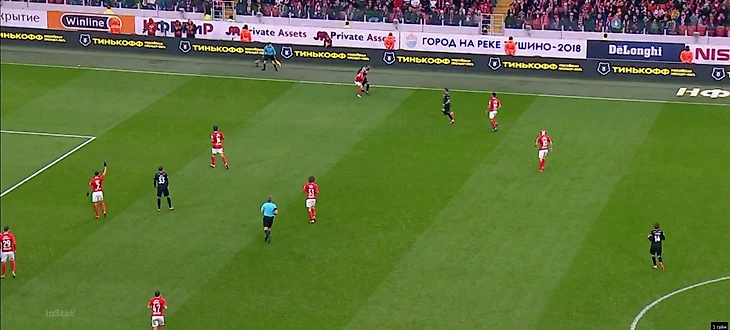 Менее, чем через 10 минут уже после замены Ещенко, на правом проблемном фланге Спартака опять возникает момент.