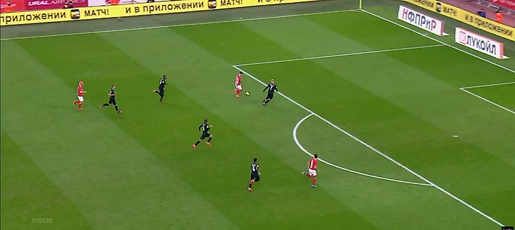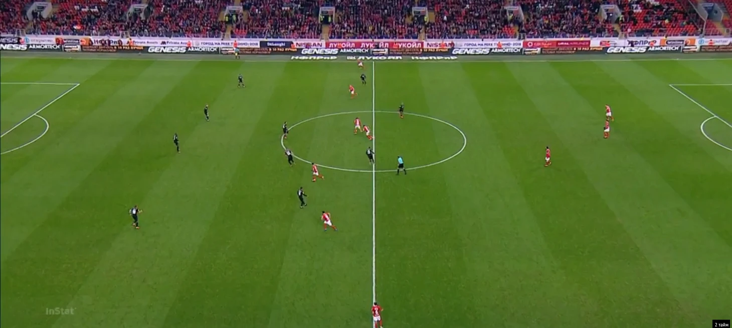 Спартак уже приучил нас к тому, что одним из главных орудий команды является прессинг. В этой игре красно-белые также активно прижимали противника на его половине поля, хотя отступления от этой стратегии тоже были - о них я скажу позже.