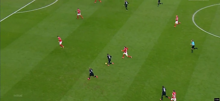 Высокий прессинг стал одной из причин первого опасного момента в матче.