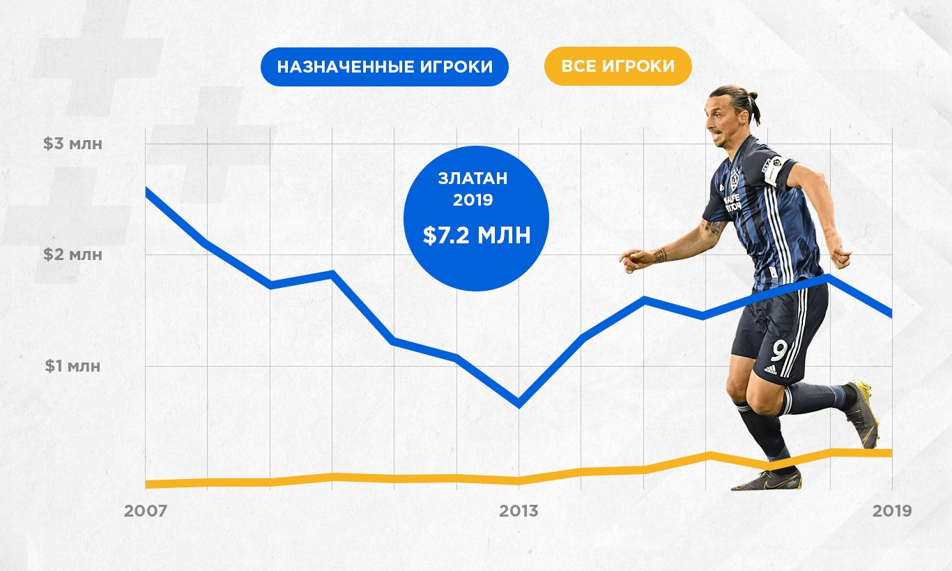 Многое изменилось в 2007-м году, когда Дэвид Бекхэм — икона английского футбола — на 5 лет подписал контракт с "Лос-Анджелес Гэлакси". Его трансфер скорректировал систему лиги. Он стал одним из самых, если не самым влиятельным игроком за всю историю существования МЛС. Знаменитая цитата президента "Гэлакси" Криса Кляйна тогда разлетелась по всему миру. По его словам, Бекс превратил "соккер" в настоящий футбол. Именно в честь Дэвида клуб установил первую в истории бронзовую статую около стадиона. Именно из-за Бекхэма изменили "потолок зарплат" и ввели правило "назначенного игрока", которое позволяет клубам приобретать до 3-х футболистов, чья зарплата может превышать общий бюджет по зарплате.