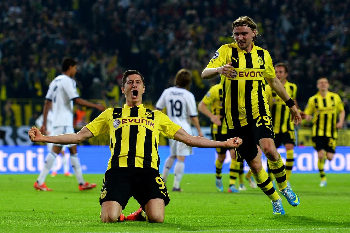 Если в прошлый раз мы вспоминали игру «Боруссия-Малага», то теперь пришло время рассказать о самом лучшем матче в исполнении подопечных Клоппа в том розыгрыше. В первом полуфинальном матче «Боруссия» дома разгромила мадридский «Реал» со счетом 4:1, Роберт Левандовски оформил покер.