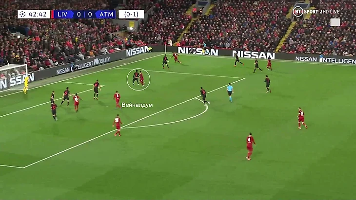 7. «Ливерпуль» прекрасно вскрывал левый фланг «Атлетико». Но даже успешная фланговая игра – тактика, которая сильно зависит от навесов. Команда Симеоне умеет обороняться при подачах. Просто количеством их не запугать, даже когда в исполнителях АОЧ и ТАА. Замысел Клоппа был эффективен лишь в сочетании с рывками Джини Вейналдума в штрафную.