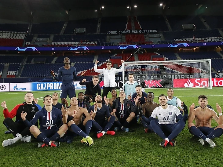 «ПСЖ» вышел к болельщикам отмечать победу над «Дортмундом». Они весь матч стояли за стадионом и поддерживали команду