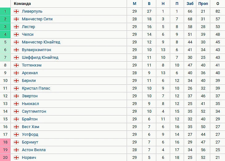 На всякий случай напоминаем: сейчас таблица АПЛ выглядит так.
