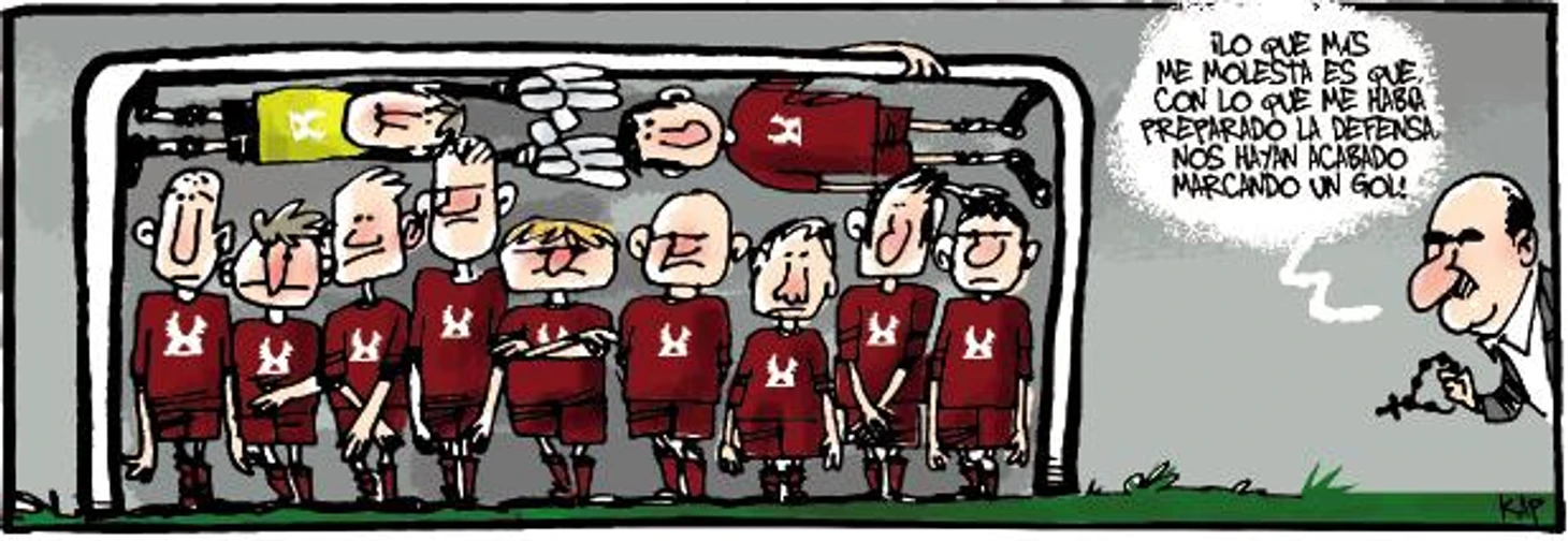 Но нужно что-то делать, вступить в неравный бой с ветряными мельницами Каталонии, пришло время раз и навсегда покончить с tiqui-taca. Главным образом потому, что её никто так и не победил. Я не говорю о победе в одном отдельном матче, пусть даже в плей-офф Лиги Чемпионов, речь о таком поражении, после которого понятно, что это всё, данная система изжила себя, конец, тема закрыта, пора открывать новую страницу, начинать сначала. Нет, та «Барса» закончилась сама собой на пике могущества. Поэтому, если такая команда существовала однажды и оставила после себя мечту о бесконечном контроле мяча, почему она не может вернуться снова?