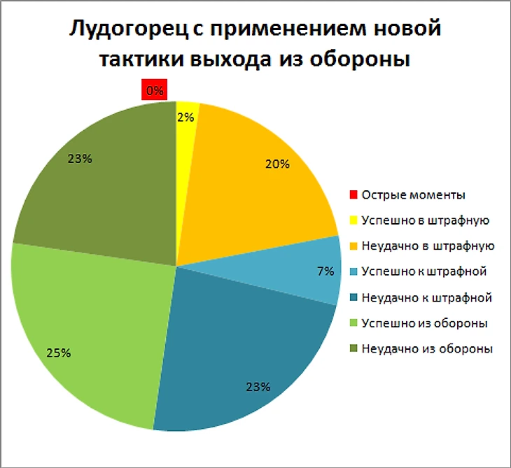 1. Выход из обороны (зеленый цвет на диаграмме). Соперник прессингом мешает команде, владеющей мячом, выйти от своей штрафной или на чужую половину поля, в зависимости от высоты его обороны.