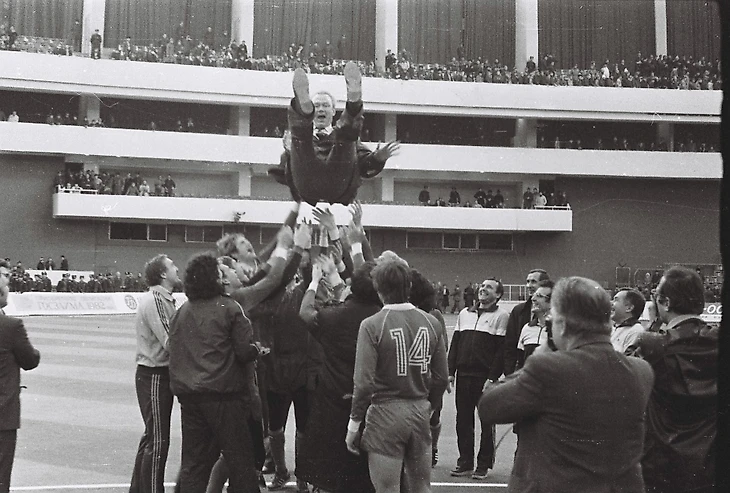 1985. Радость Лобановского и его хлопцев - «Зенит» передает чемпионский титул киевскому «Динамо»