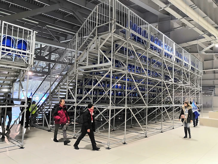 На самом верхнем ярусе в глаза очень бросились мне "самопальные" трибуны, которые наверное установили временно, для большего количества мест, но затем так и оставили.