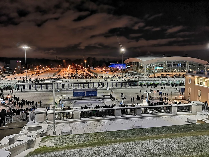 Не привык я к таким стадионам. Зато, при температуре -6 на улице, на трибуне я сидел в кофте, тепло, прикольно.