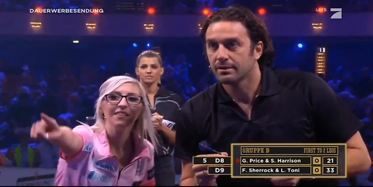 Свои силы в дартсе пробовали Лука Тони и Робин ван Перси — правда, только в выставочных матчах. Фотография, где Тони играет с Фаллон Шеррок, была очень популярна в британских интернетах сразу после новогодних праздников. Мы её тоже публиковали, но здесь не будет лишним повториться.