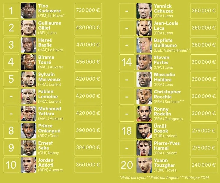 France Football опубликовал Топ-20 высокооплачиваемых игроков Лиги 2 в этом сезоне.