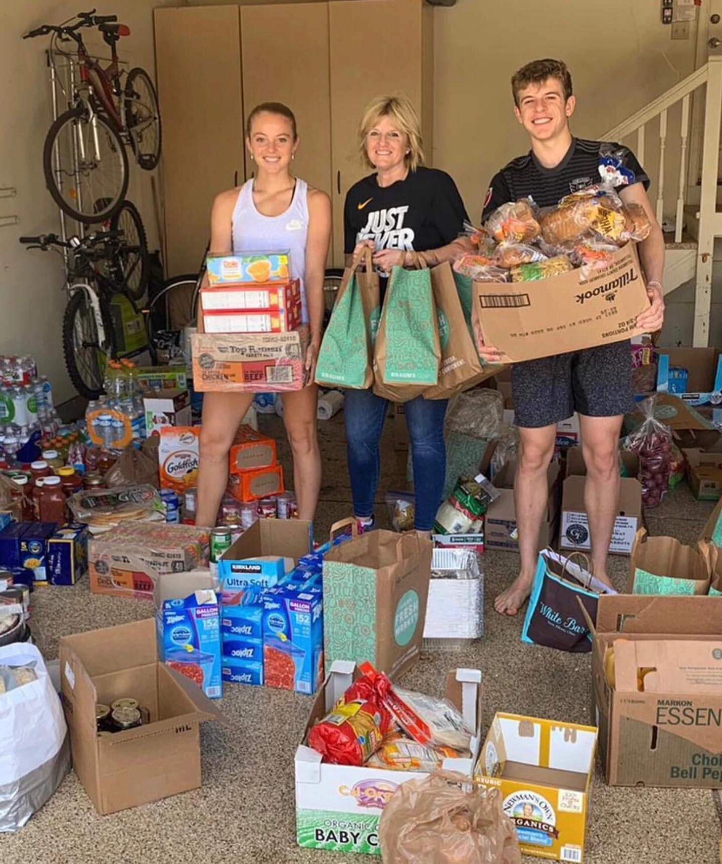 «Я помогаю маме готовить пакеты с предметами первой необходимости к доставке. Гараж забит битком. [В среду] она сказала мне, что эти пакеты доставили 70 семьям. У некоторых из них есть дети, есть даже семья на 15 человек, которые живут в одном доме. Она также поддержала 98-летнего мужчину, который не может сам пойти в продуктовый магазин. Он обожает мамин домашний пирог. Это единственное, что он будет есть», – поясняет Суон.