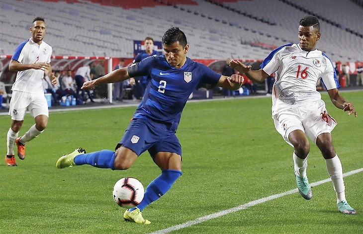 Один из самых многообещающих воспитанников «Квейкс», защитник Ник Лима, в товарищеском матче сборной США против сборной Панамы