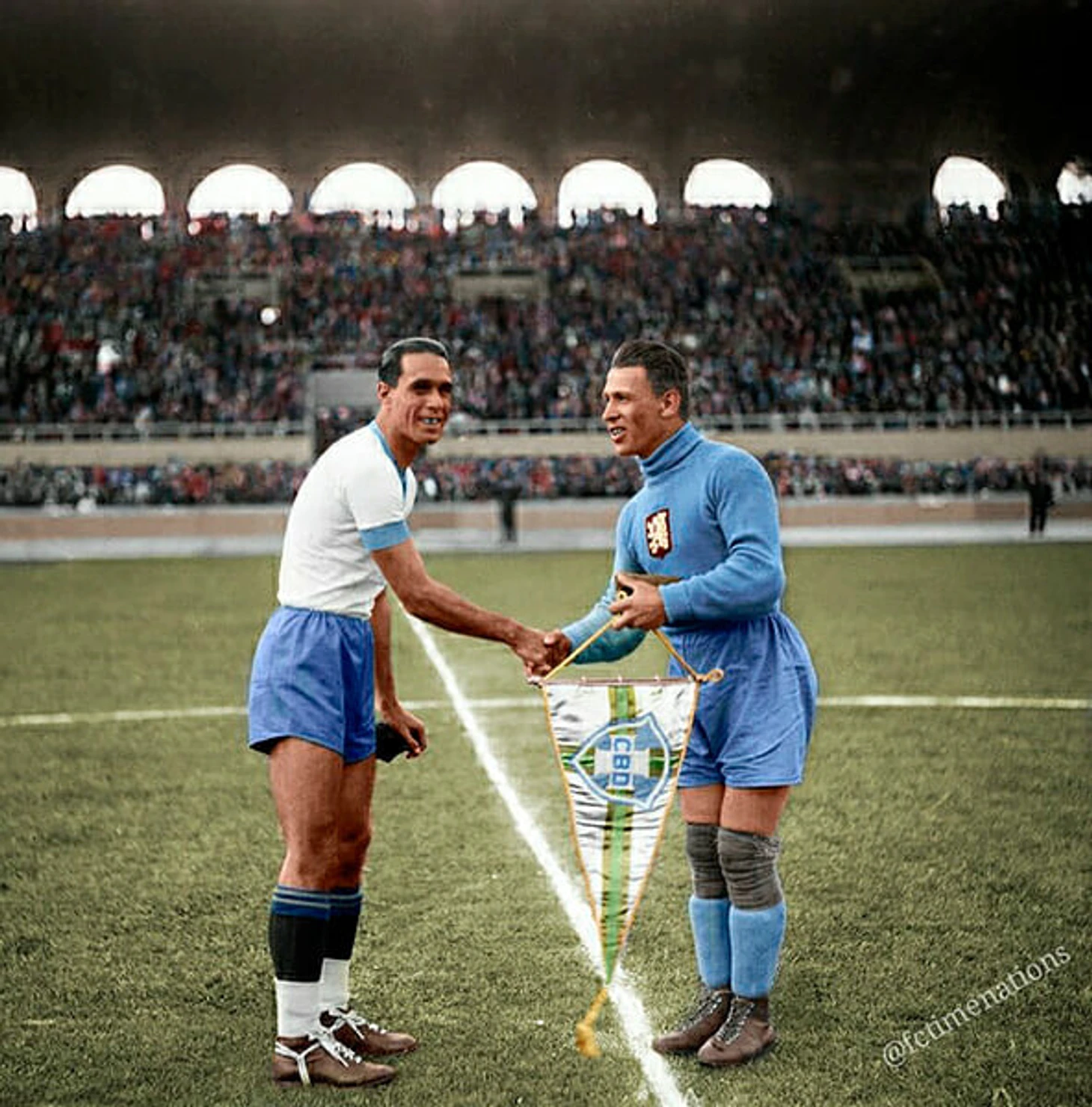 И снова ЧМ-1938. Это Бордо и четвертьфинал ЧМ. Опять Чехословакия, теперь против Бразилии. В переигровке бразильцы победили 2:1.