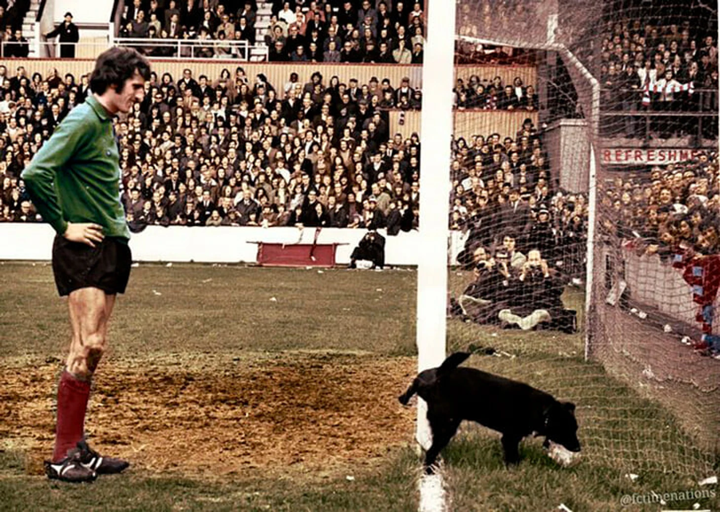 1977. Вратарь «Вест Хэма» Рэй Клеменс ждет собачку.