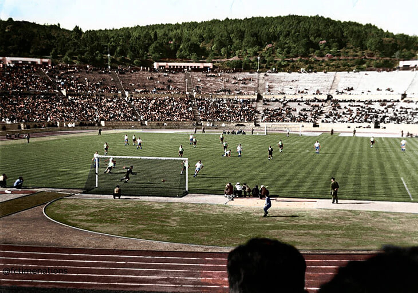 1955. А вот и первая игра Кубка чемпионов. «Спортинг» и «Партизан» в Лиссабоне.