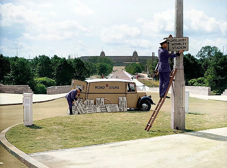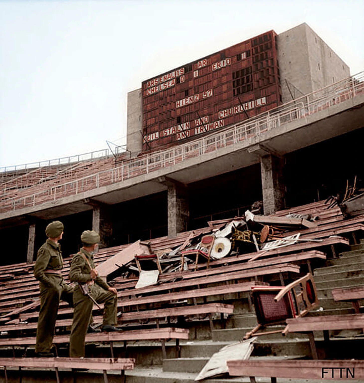 1945. Британские солдаты на Олимпийском стадионе в Берлине.