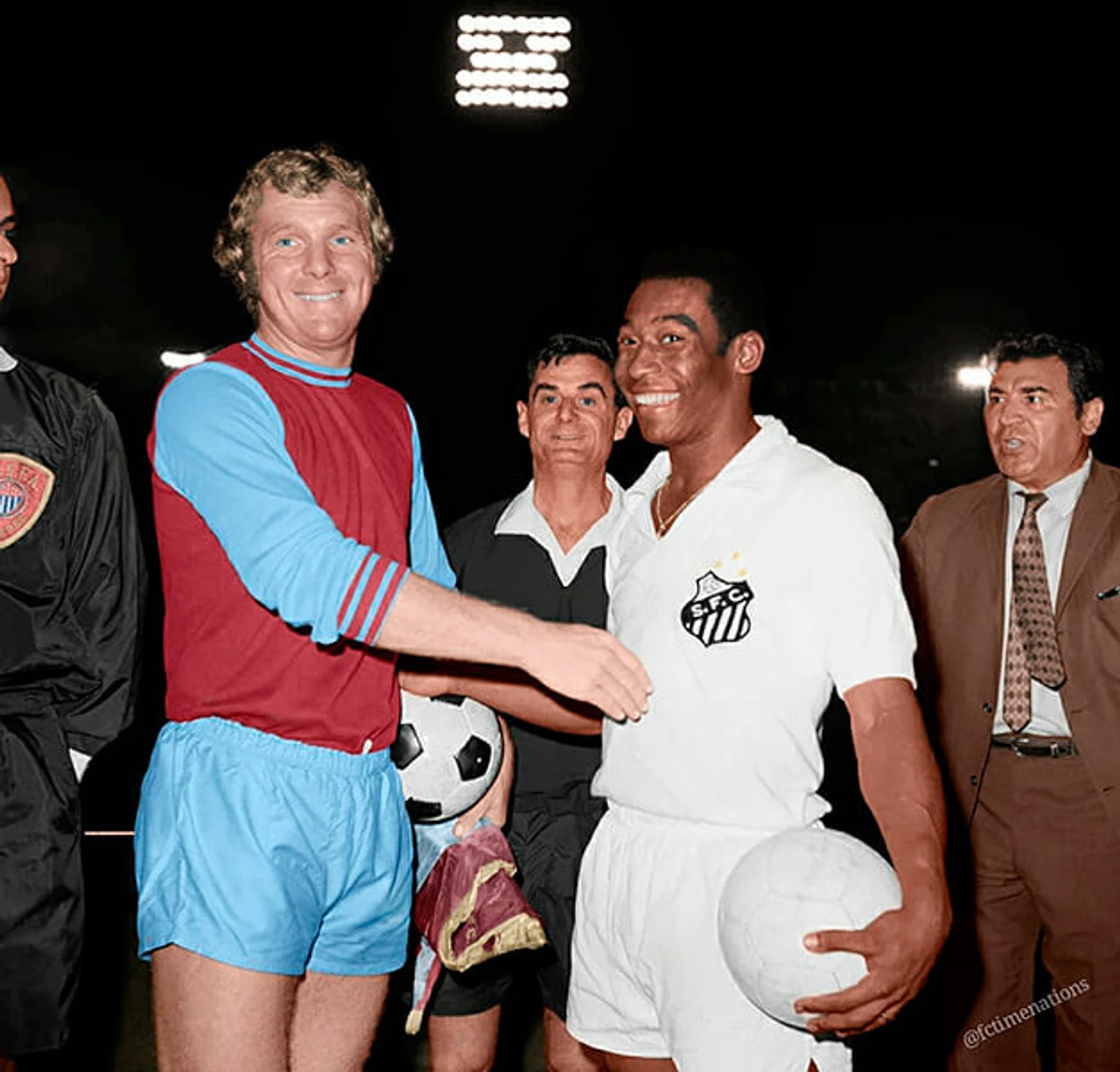 1970. Бобби Мур и Пеле перед товарищеским матчем «Вест Хэма» и «Сантоса» в Нью-Йорке.