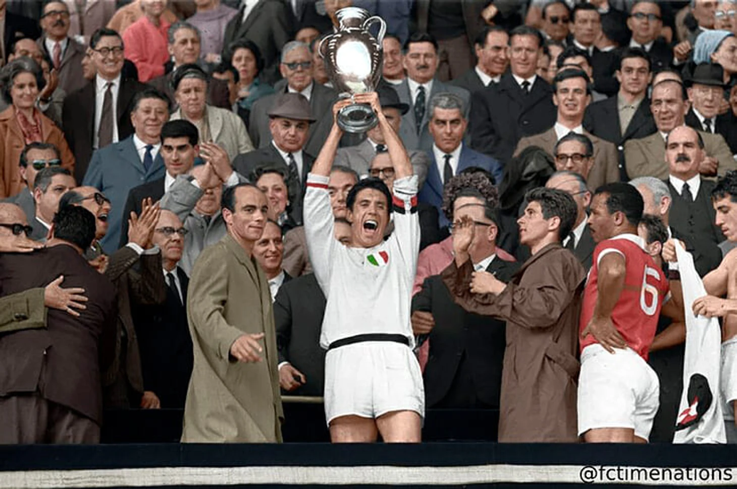 1963. «Милан» впервые побеждает в Кубке чемпионов. С трофеем – Чезаре Мальдини.
