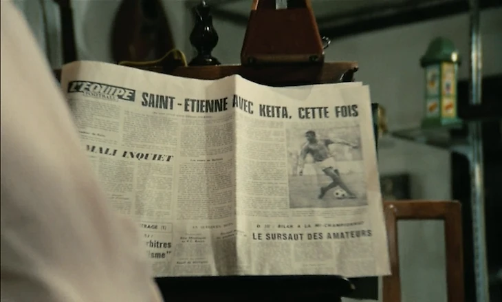 Успехи «Сент-Этьена» нашли свое отражение даже во французском кино. Кадр из фильма «Высокий блондин в черном ботинке». Герой Пьера Ришара музицирует на фоне свежего номера L’Equipe