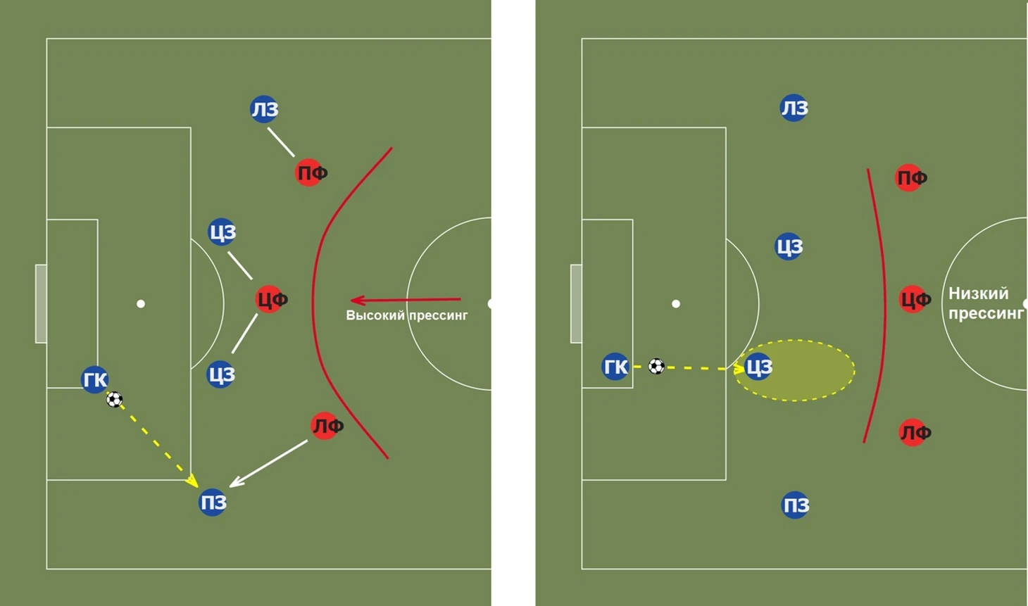 Если крайний защитник будет сконцентрирован исключительно на предотвращении появления свободной зоны, то он позволит сопернику спокойно принять мяч в ноги. Чтобы исключить вероятность обоих событий, защитнику необходимо следить и за мячом, и за оппонентом. Если же футболист «зевнул» и допустил пас в ноги сопернику, то ему нужно вступить в отбор и попытаться отобрать мяч.