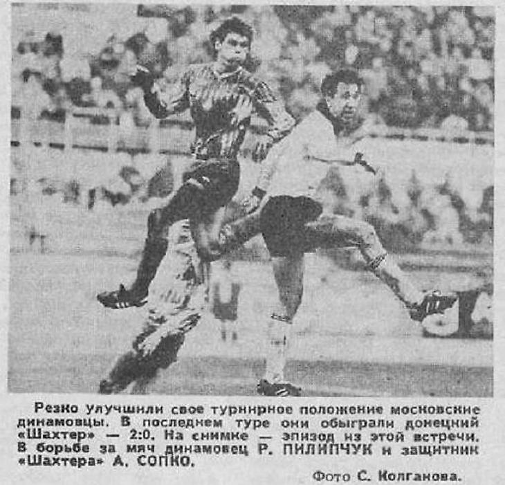 Дальше слову постоянному читателю моей странички на Фейсбук «Футбол від Санича. Прошлое и настоящее», знатоку киевского «Динамо» Олегу Минко: «Относительно матча с «Днепром». Это был лучший матч киевлян в Днепропетровске за период 87-89. Да, «Днепр» остро атаковал, но это были эпизоды на фоне системной игры киевлян. Почему - то ни одно спортивное издание, описывая этот матч, не обратило внимание на то, что киевляне последние тридцать минут матча совсем не снизили свой атакующий потенциал, а просто перешли на розыгрыш мяча за пределами штрафной и наносили очень опасные удары с 16-20 метров. А все написали, что последние минуты киевляне практически не создавали остроты. Не правда…