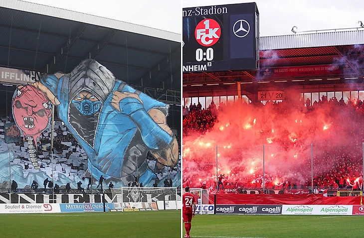 Начну с клуба из моего города, о котором я писал в одной из первых статей. Вальдхоф Маннхайм, расположившись на пересечении двух рек, Рейна и Неккара, оказался в одном регионе с ФК Кайзерслаутерном. Оба клуба обладают богатой историей и сумасшедшей фанатской поддержкой. Про ФК Кайзерслаутерн можно составлять отдельный текст о многочисленных чемпионствах, огромной сети болельщиков и победе над Динамо Лобановского в кубке УЕФА 1978-го. Вальдхоф не настолько успешен, но все-равно впечатляет преданностью фанатов и упорным продвижением к высшим дивизионам за последнее время. Спустя 18 лет, две враждующие команды снова встретились в третьей Бундеслиге на Карл-Бенц Арене.