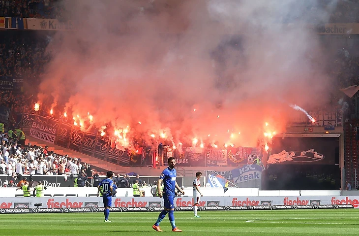 Противостояние двух клубов началось в самом первом сезоне Бундеслиги 1963-го года. С тех пор команды успели провести 62 дуэли с заметным перевесом швабов (34 побед против 17 от “Карлсруэ”). На протяжении одного года я учился в колледже при Университете Карлсруэ, где посетил свой первый матч на территории Германии. Местная команда играла на домашнем “Вильдпарке” с хорошо мне знакомым клубом из города Мерседеса. Ещё недавно этот клуб на моих глазах навязывал борьбу Барселоне в Лиге Чемпионов, а теперь боролся за выход из второй Бундеслиги. В ходе учебы, замечая на кампусе наклейки и графити, я понял, что на стадионе за студенческим парком должно быть стабильно горячо. Но не ожидал, что настолько.