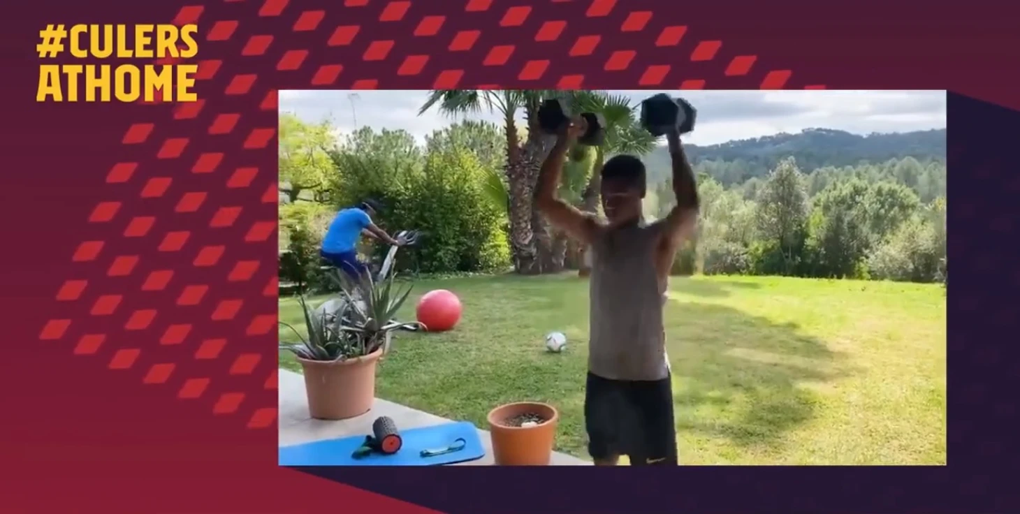 Тинейджер тренируется у себя дома в самоизоляции, как и все футболисты в данное время. Нападающий находится под контролем Антонио Гомеса, тренера каталонцев.