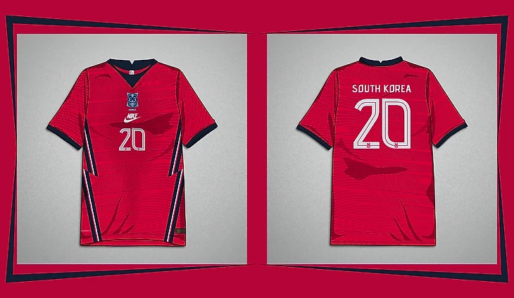 Вот форма для Южной Кореи. Лед изменил эмблему федерации, а также поработал над дизайном цифр. Олдовый логотип Nike Futura, эмблема федерации и номера находятся в центре футболки.