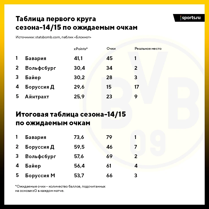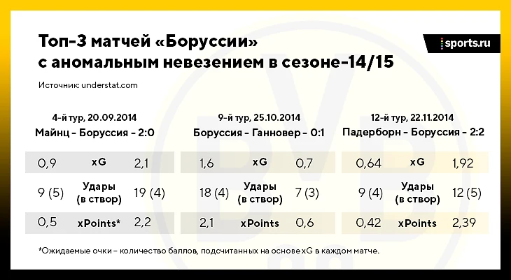 Это был сезон тотального невезения: по ожидаемым очкам «Дортмунд» шел в лидерах, в реальной таблице – на предпоследнем месте