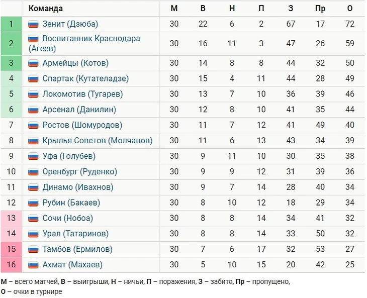 А вот так выглядит таблица СБЛ+РПЛ: «Зенит» – чемпион, Николоз Кутателадзе дотащил «Спартак» до Лиги Европы, а Нобоа (даже с Кокориным) пока не спас «Сочи» от вылета.