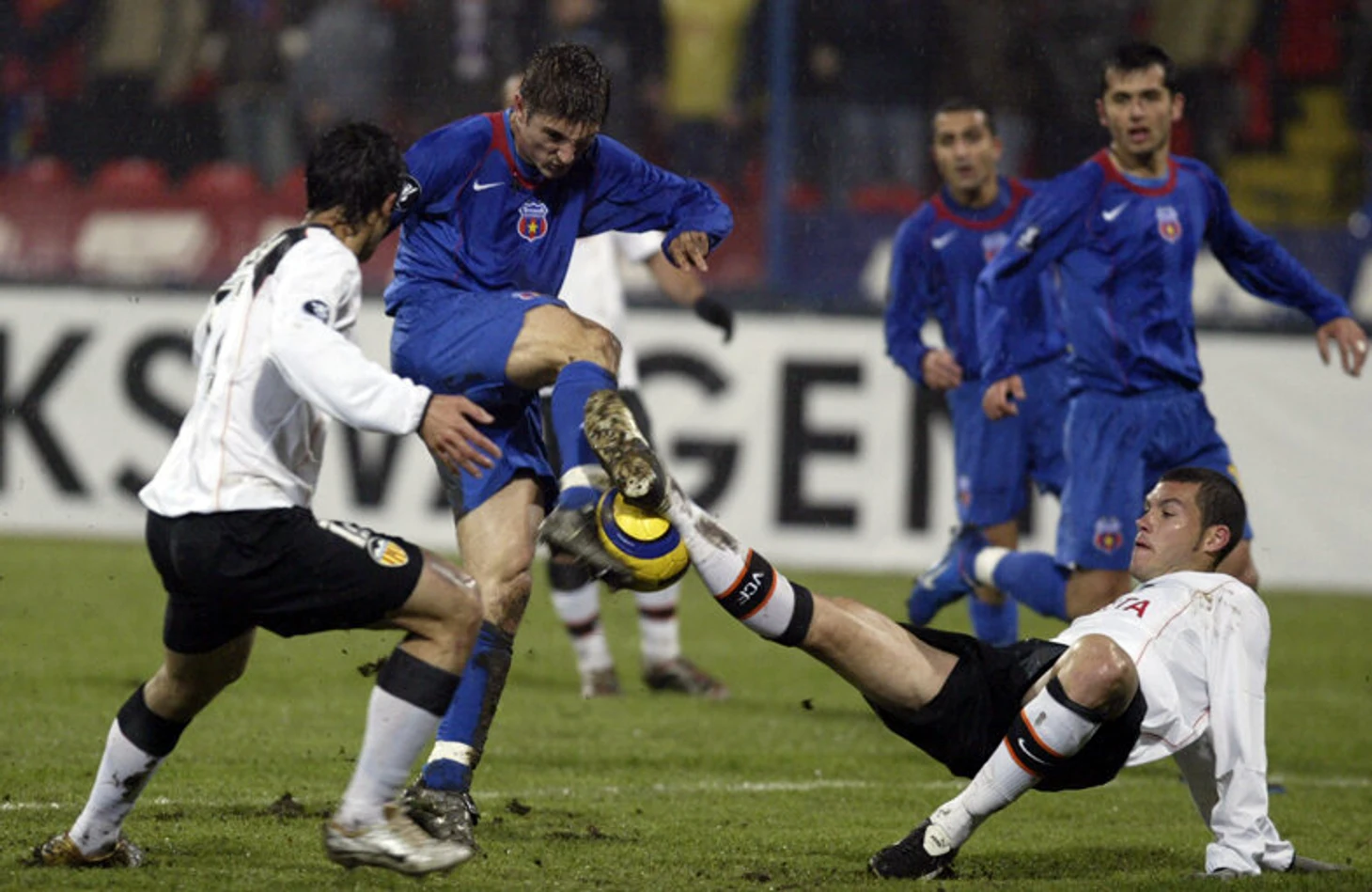 В Кубке УЕФА 2004/2005 "Валенсия", действующий обладатель трофея и действующий чемпион Испании, была выбита бухарестским "Стяуа" уже в 1/16 финала. После домашних 2-0 "Валенсия" была бита с тем же счетом в столице Румынии. "Стяуа" благодаря дублю Андрея Кристи во втором тайме перевел выяснение отношений в дополнительное время, а затем точнее пробил серию послематчевых пенальти. Клуб сенсационно вышел в 1/8 финала, где его соперником стал "Вильярреал".