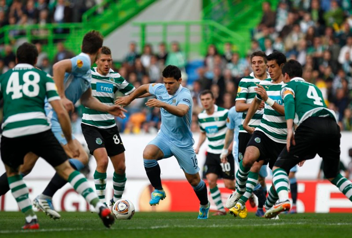 Но все оказалось не так просто. "Спортинг" обыграл англичан в домашнем матче (1-0), после чего выигрывал в Манчестере к перерыву 2-0! Во втором тайме "Манчестер Сити" сумел забить гостям три мяча, но этот результат устроил гостей. "Спортинг" по правилу гола на выезде вышел в четвертьфинал Лиги Европы! Можно говорить о том, что "Манчестер Сити" предпочел Лиге Европы успешное выступление в Премьер-Лиге, но факт остается фактом - клуб очень уверенно прошел "Порту", а потом вылетел от "Спортинга"! "Спортинг" в четвертьфинале обыграл 3-2 по сумме двух игр харьковский "Металлист" Мирона Маркевича, а в полуфинале в упорной борьбе уступил "Атлетику" Бильбао. Выиграв домашний матч 2-1, в Бильбао "Спортинг" признал превосходство хозяев, 1-3. Команды оказались приблизительно равны, у "Спортинга" были все шансы на выход в финал.