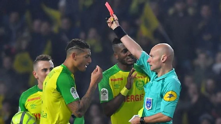 В компенсированное время первого тайма при счете 0:1 парижане убежали в контратаку, в результате которой… пострадал судья матча Тони Шапрон. Причем по собственной вине. Игроки команды Клаудио Раньери пытались догнать соперников, бежали к собственным воротам, и в этот момент Шапрон, поменяв траекторию своего движения, оказался на пути бразильца. Диего Карлос случайно снес арбитра, однако тому почему-то показалось, что футболист «Нанта» «сфолил» умышленно. Разозленный Шапрон сперва попытался как можно сильнее ударить обидчика ногой, а потом показал ему желтую карточку – вторую для бразильца в матче. Поведение судьи шокировало Диего Карлоса, он долго оспаривал решение человека со свистком.