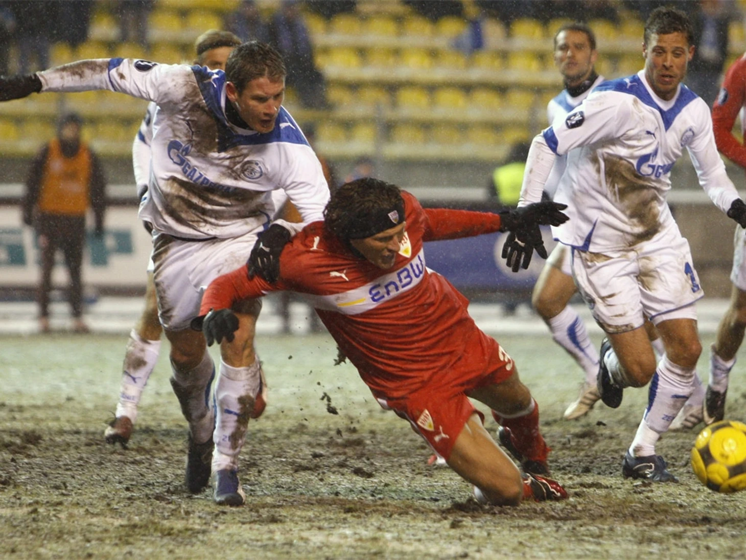 В пару к Зениту попал крепкий Штутгарт, за который играли Йенс Леманн, Томас Хитцльспергер, Какау, Марио Гомес, Сердар Таски, Халид Була(х)руз, Сами Хедира. Петербуржцы на тот момент являлись действующими обладателями Кубка УЕФА, поэтому пасовать перед «швабами» не собирались. В первом матче на Петровском счёт был открыт уже на второй минуте усилиями Хусти, но к пятнадцатой минуте Марио Гомес счёт сравнял. В концу тайма Тимощук снова вывел Зенит вперёд и до конца матча Штутгарт ничем не ответил, но счёт 2:1 оставлял им серьёзные шансы. К тому же из-за дисквалификации ответный матч пропускали Ширл и Тимощук. На скамейке запасных у Адвоката вообще оказалось только три полевых игрока – Ионов, Текке и Файзулин. Штутгарт никак не использовал игровое преимущество и в конце первого тайма Зенит отличился в контратаке – с передачи Данни забил Семшов. Как будто потеряв надежды на проход, второй тайм немцы начали очень бледно, но замены несколько расшевелили игроков и на 80-й минуте Гебхарт сравнял счёт. Зенит не дрогнул, последнюю десятиминутку провёл максимально собрано и даже смог забить. Вышедший на замену Файзулин с передачи всё того же Данни поставил точку в противостоянии.