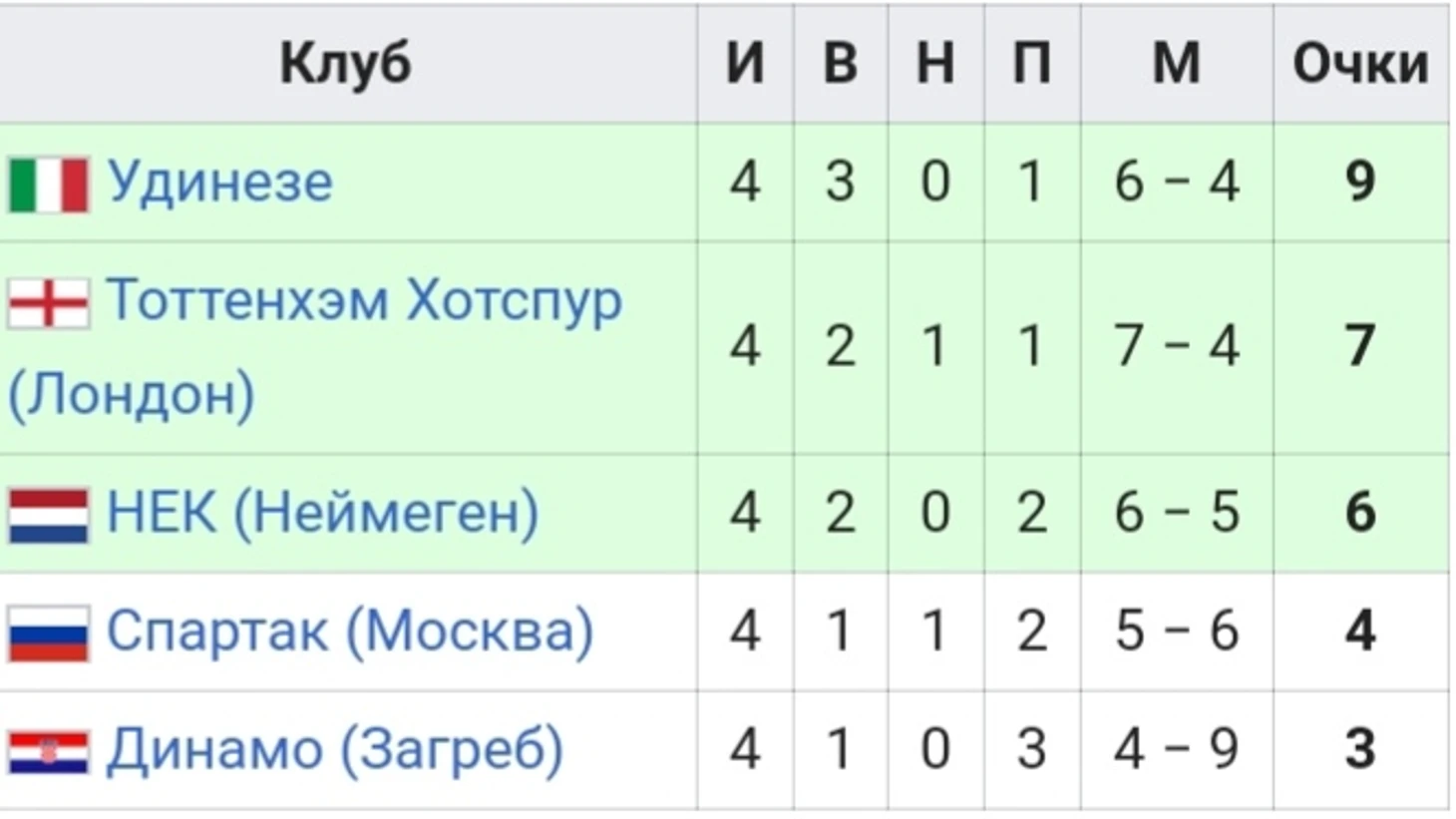 Из-за формата турнира две победы почти гарантированно обеспечивали выход из группы, более того Леху, ПСЖ и Копенгагену и вовсе хватило 5 очков. Но даже в таких условиях Спартак занял четвёртое место. В первом матче москвичи проиграли Удинезе со счётом 2:1, но во втором благодаря голу Ивана Саенко (помните, был такой футболист?) одержали победу над загребским Динамо. В оставшихся двух матчах Спартаку надо было один раз победить. Ближайшим соперником москвичей был НЕК.