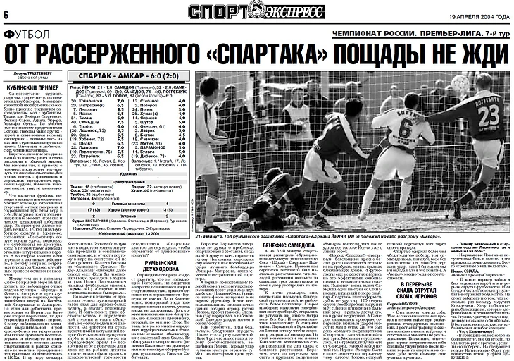 Самой большой победой в чемпионате России в ХХI веке считается встреча 18 апреля 2004 года - «Спартак» 6-0 «Амкар»