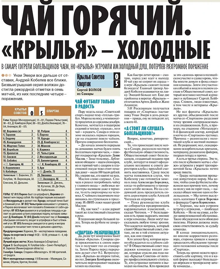 В шаге от третьего места оказался матч 4 ноября 2012 года - «Крылья Советов» 0-5 «Спартак»