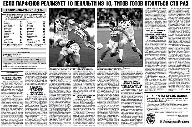 Вторым оказался матч 7 мая 2000 года - «Ротор» 1-6 «Спартак»